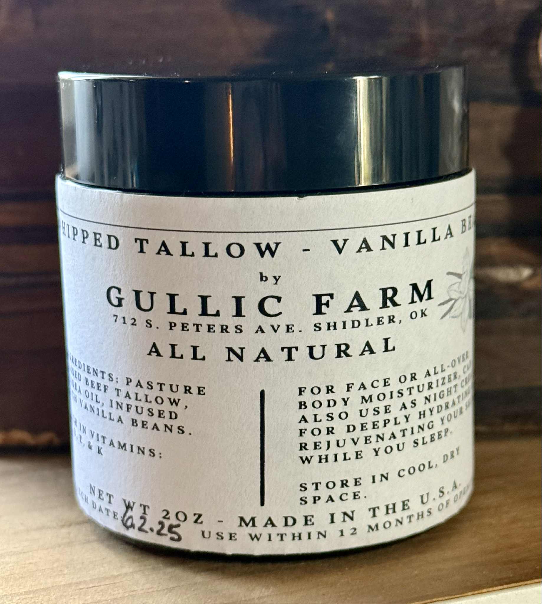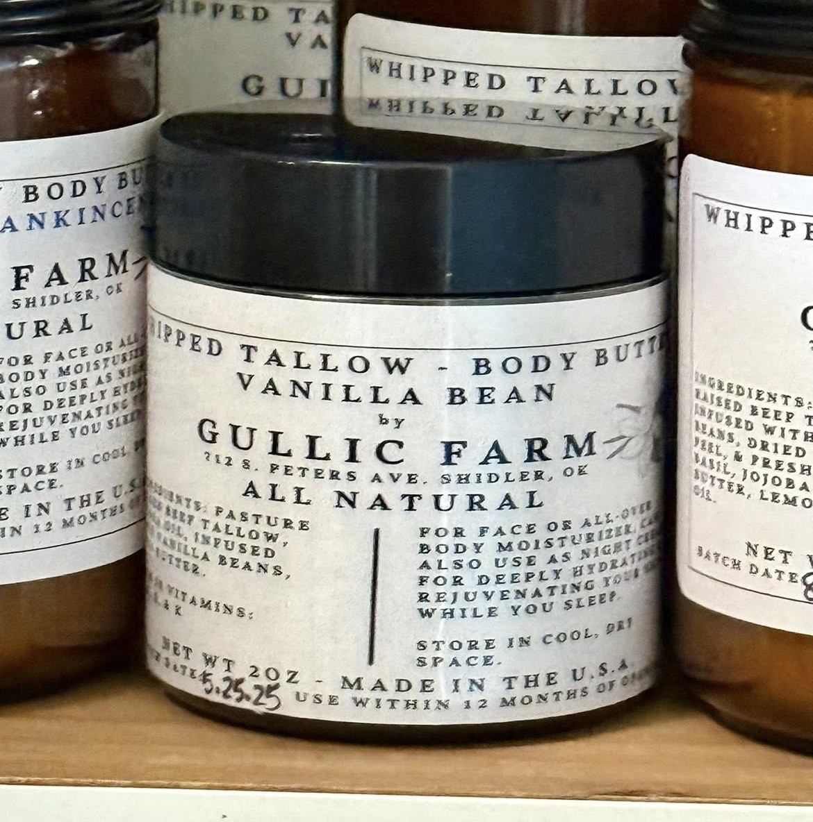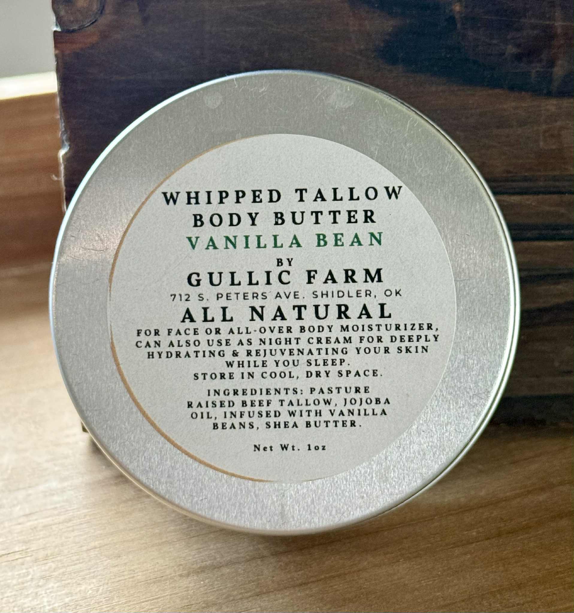 Nourish your skin with the pure, farm-crafted goodness of Gullic Farm Whipped Tallow – Vanilla Bean. We start with pasture-raised, grain-finished beef tallow, rich in vitamins A, D, E and K and naturally replenishing fatty acids. We then whip it to a light, smooth balm, and blend in nourishing jojoba oil and shea butter for deep hydration and skin barrier support. Finally, we infuse the blend with real vanilla beans, giving your skin a subtle, comforting vanilla aroma — no synthetic fragrance, no fill-ins, just nature’s best.