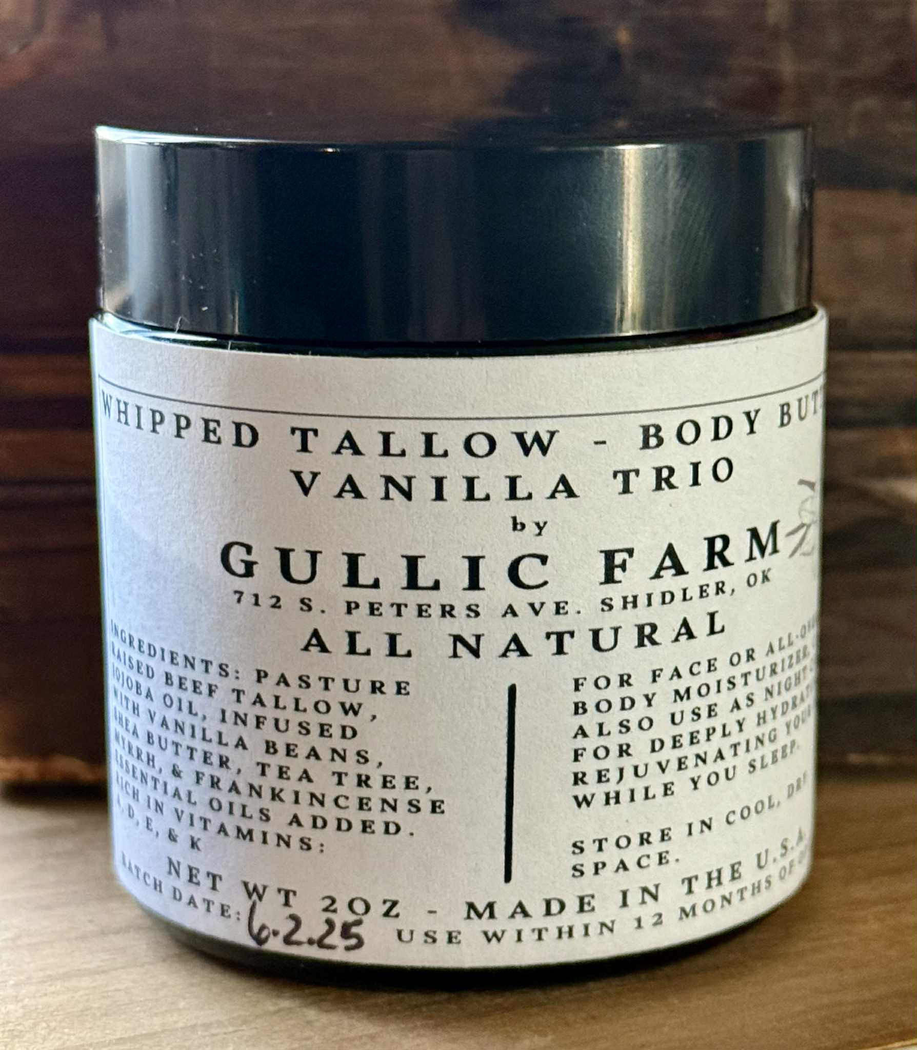Nourish your skin naturally with the farm-crafted luxury of our Vanilla Trio Whipped Tallow Body Butter – a rich, creamy balm made with the purest ingredients.